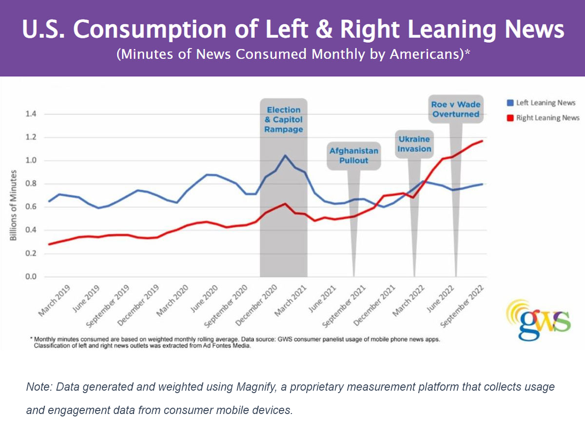 Mobile consumption of news from right leaning media has skyrocketed up 86%, far exceeding its high point during the previous election cycle.