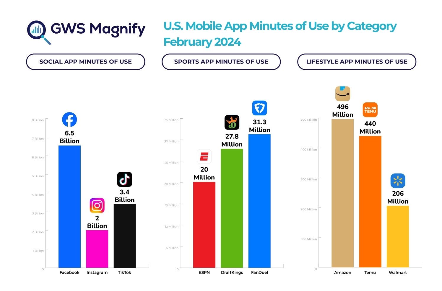 GWS Magnify provides routine insights to companies, investors, and analysts wanting to stay up-to-date on consumer perceptions, experience, and app usage patterns. Our panelists generate an average 58 million data points daily across the U.S. and U.K. (overall, covering a majority of both populations).