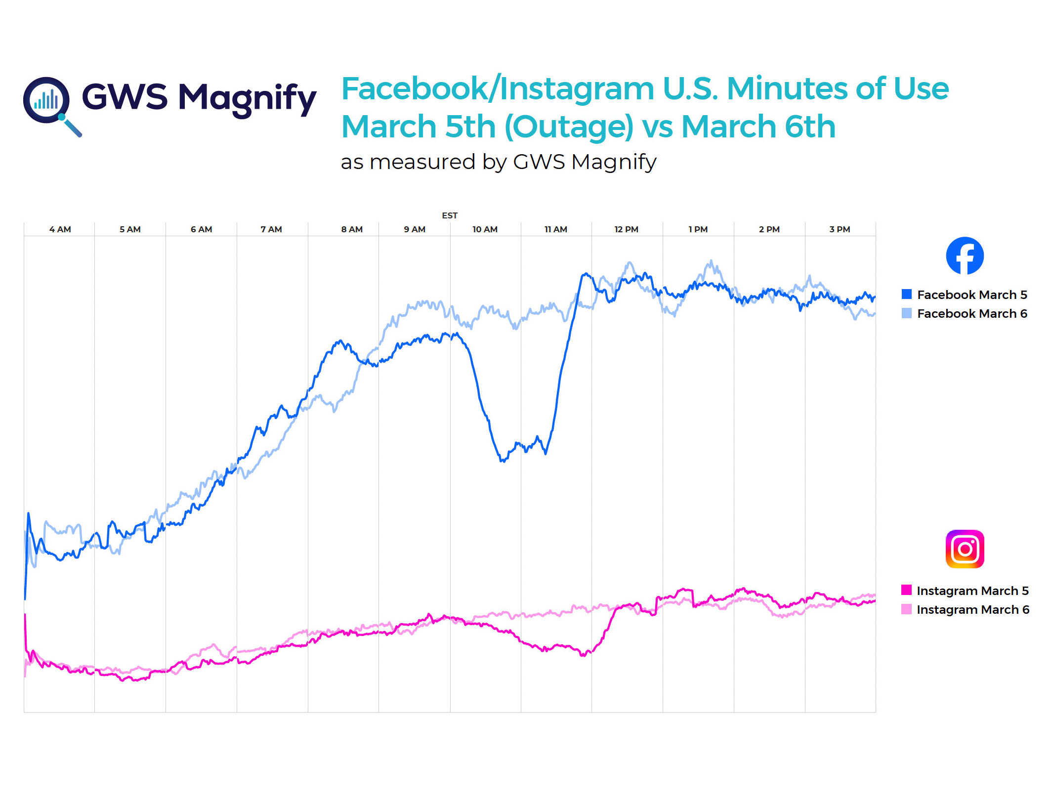 Facebook/Instagram U.S. Minutes of Use March 5th (Outage) vs March 6th