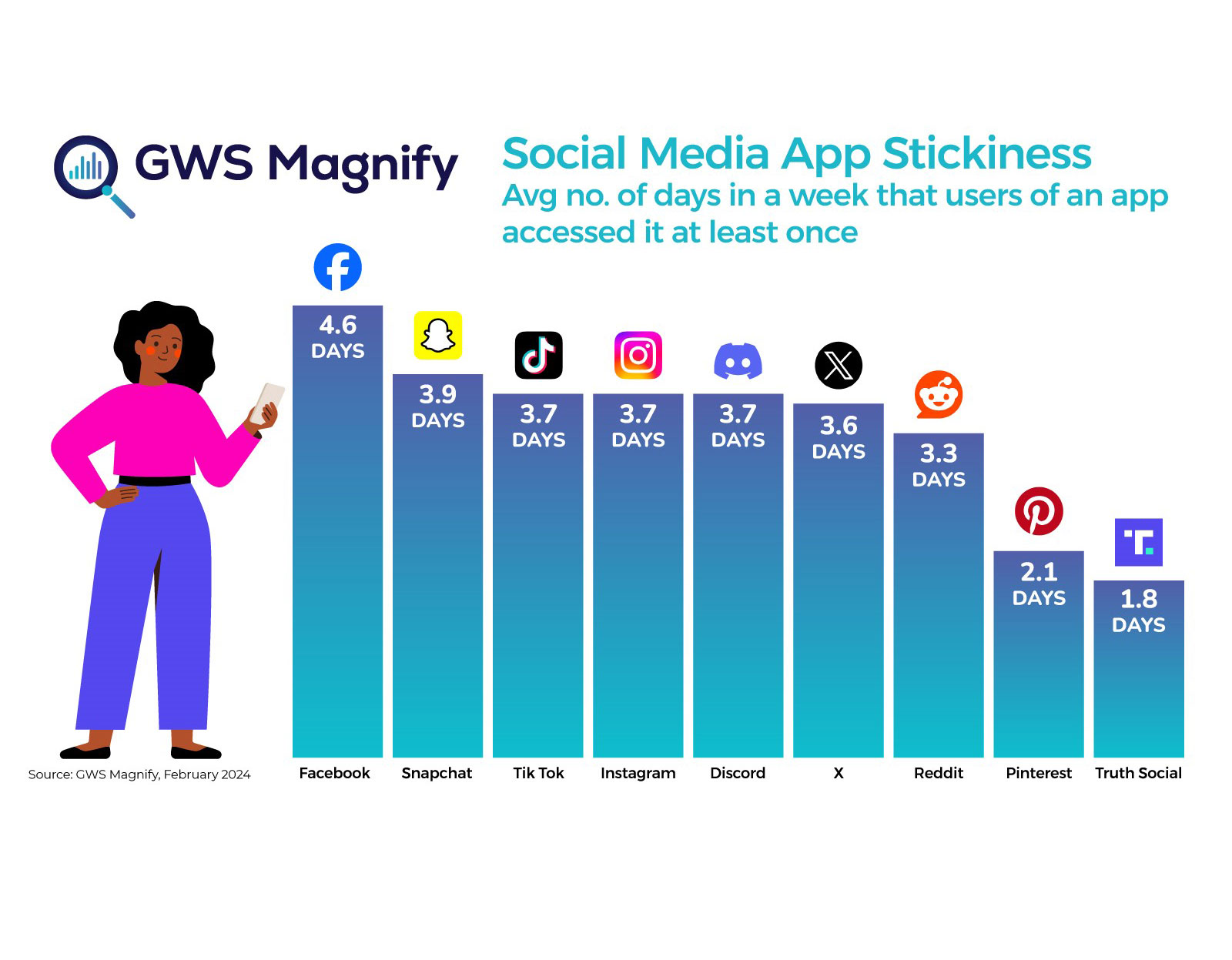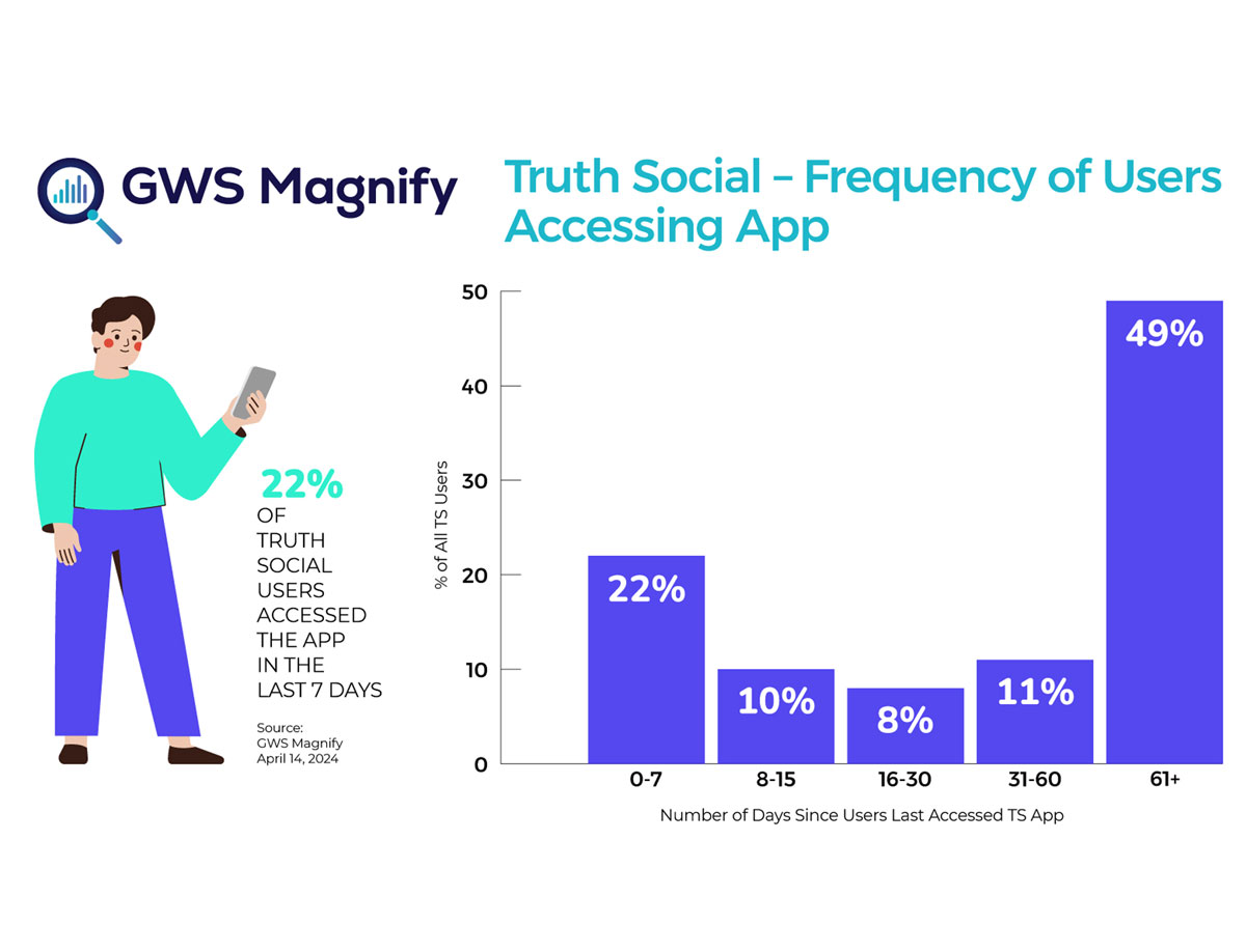 The following is a summary of Truth Social app engagement statistics involving usage, app overlap, and app stickiness